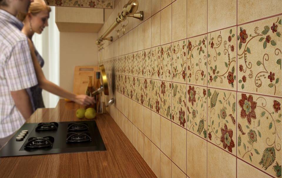 - Плитка с рисунком может стать настоящим художественным украшением вашей кухни – можно заменить стандартный материал на высокодекоративное готовое панно.