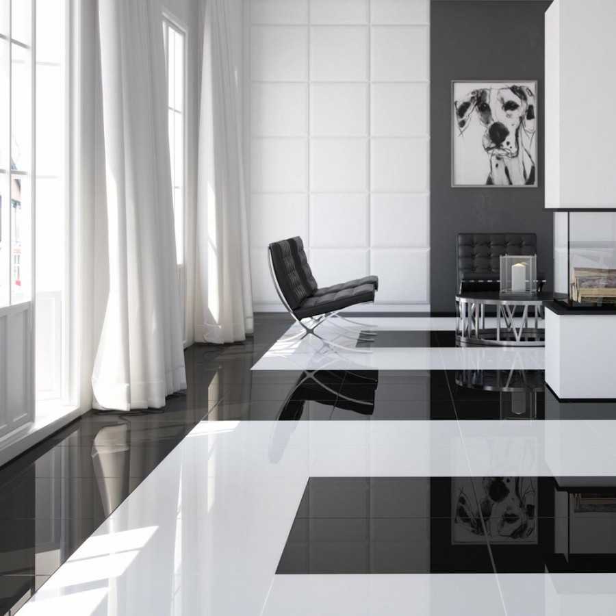 Кстати, не стоит использовать черный и белый в интерьере в равных пропорциях – это будет вызвать раздражение. Однако полы, имеющие рисунок в виде шахматной клетки, где и черный, и белый использованы все же в равных количествах, будут выглядеть довольно гармонично.