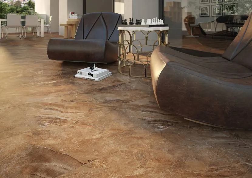 Блестящие зеркальные изделия (в отличие от матовых, шероховатых) обладают скользкой поверхностью. Если неверно выбрать плитку на пол в зале и гостиной, будет сохраняться травмоопасная ситуация. Однако стоит помнить, что любая плитка становится скользкой от воды.
