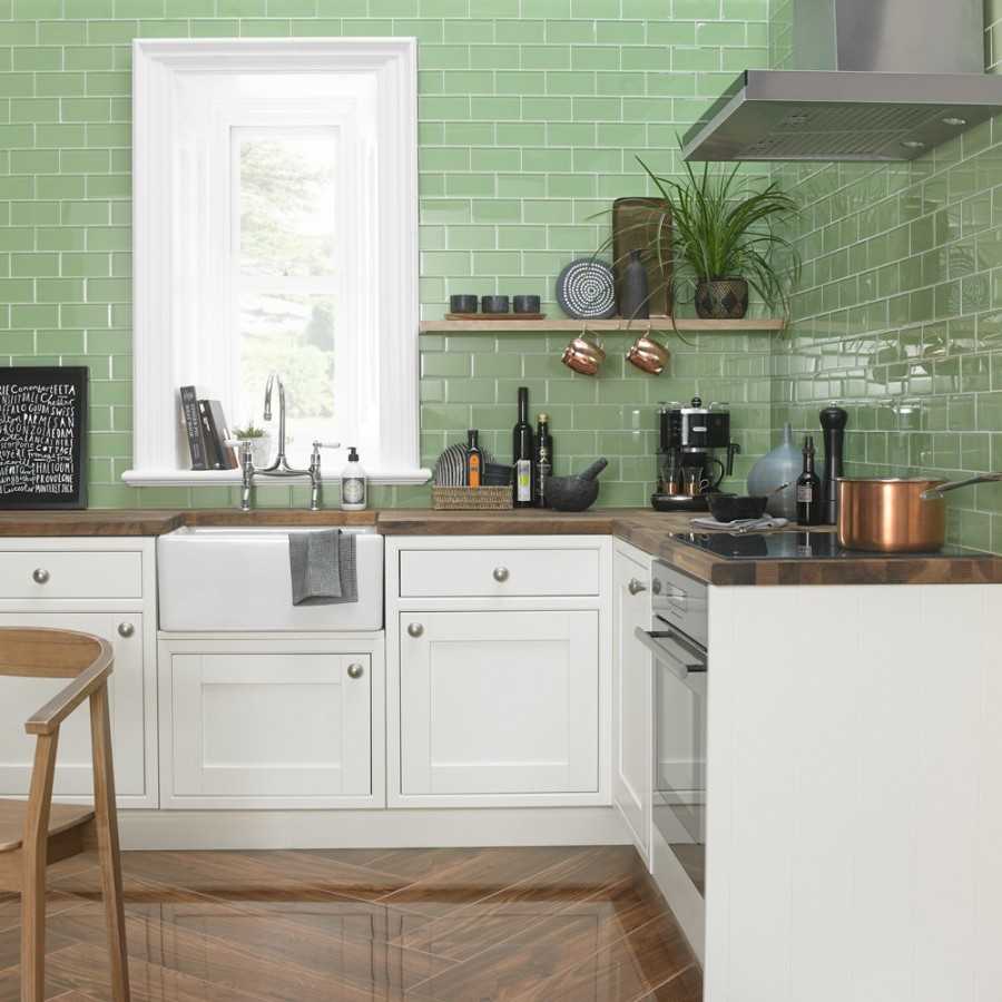 - Керамическая плитка. Самый популярный и наиболее подходящий вариант для оформления кухонного пространства. Керамика легко укладывается и имеет объемную фактуру, соответствующую кирпичу. Глазурованную плитку уместно применять для фартучной зоны так, как данное покрытие очень простое в уходе. В отделке стен также используют клинкерную или бетонную плитку с глянцевой, матовой поверхностью или фактурой, имитирующей рваный кирпич. Плюсы керамической плитки в том, что она прочная, влагостойкая, долговечная и устойчивая к перепадам температур, а также прекрасно сочетается с разными отделочными материалами.