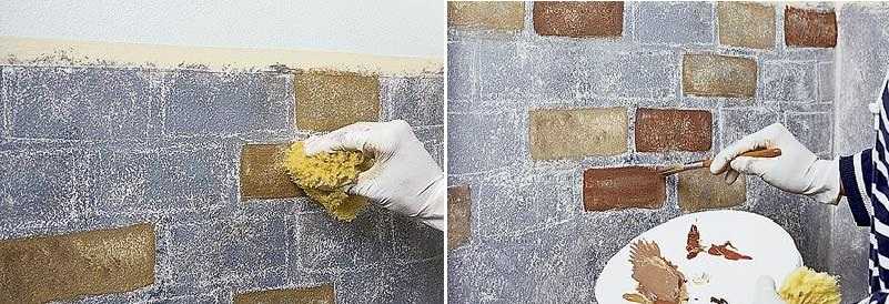 Использование специальной краски для стен, имитирующей кирпичную поверхность. Для этого нужно нанести основной цвет краски, а затем, после высыхания, нанести другой цвет краски с помощью специального шаблона, который создаст эффект кирпичной кладки.