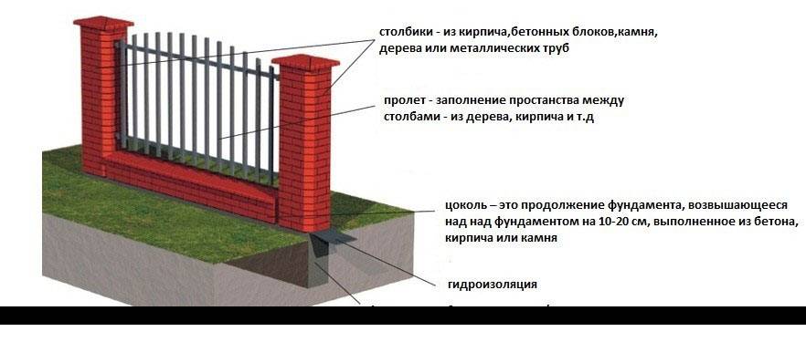 Заборы для частного дома из кирпича строятся по определенной схеме: