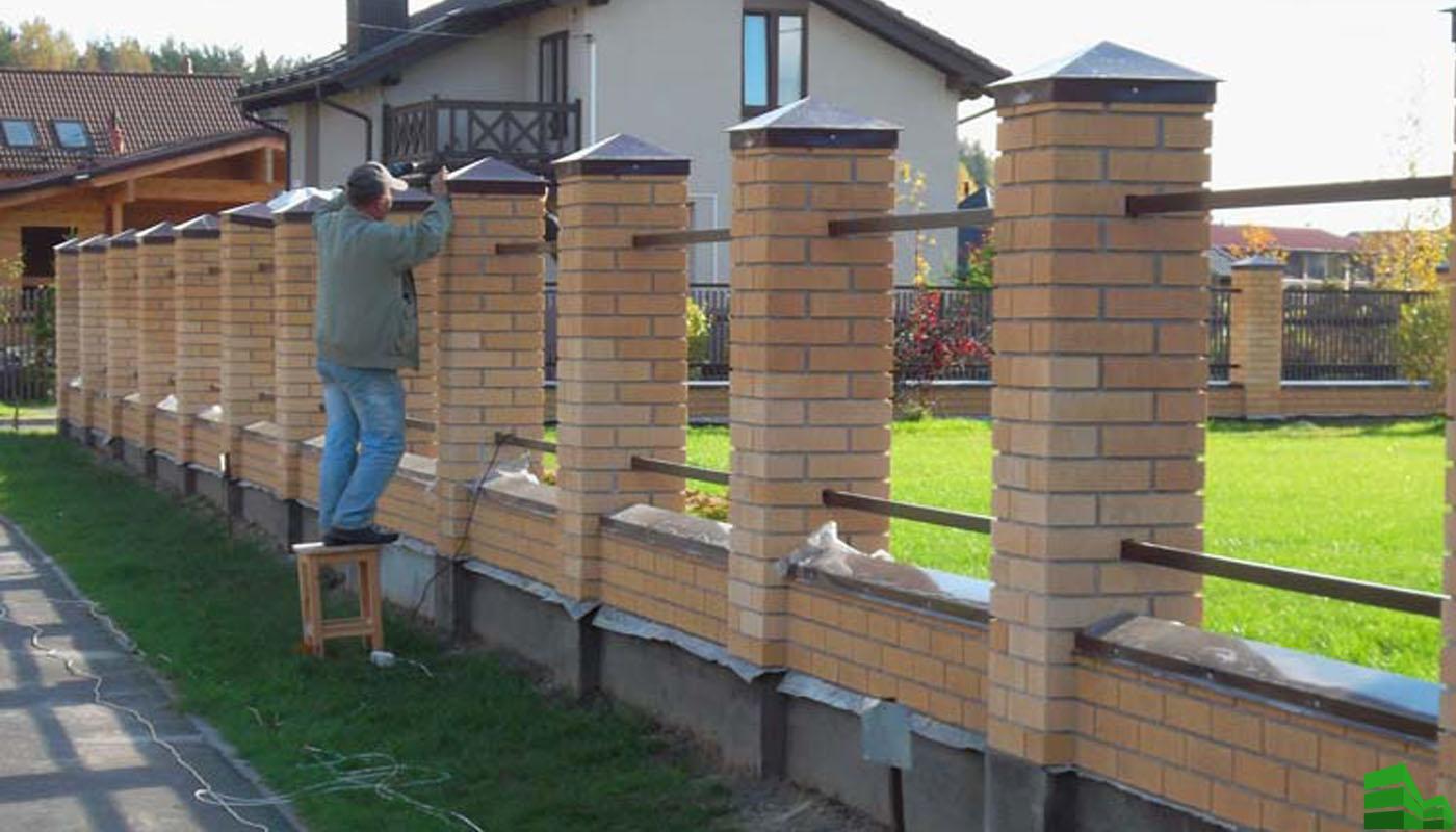 - Установка забора с кирпичными столбами