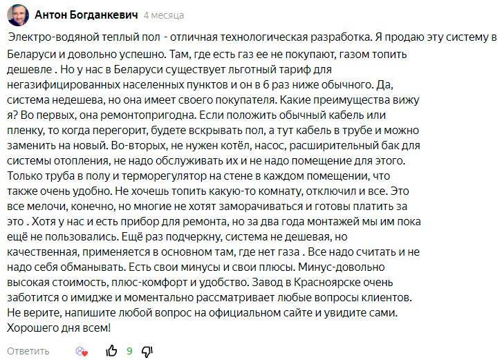 Вот и получается, что данная система – это по сути обычный (но более дорогой) электропол, с гипотетической возможностью полной замены кабеля без вскрытия стяжки. Остальная его “суперэффективность”, мягко говоря сильно преувеличена.