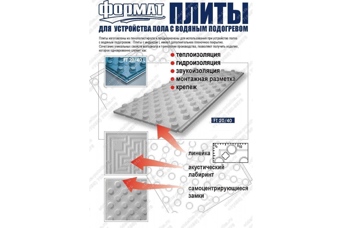 Утеплитель «Knauf Therm Тёплый пол» используют для обустройства жидкостной или паровой системы отопления « тёплый пол». Пенопласт отличается от стандартного утеплителя формой своей поверхности и функциональностью.