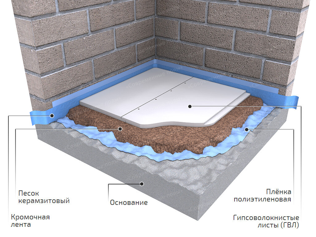 Параллельно с выравниванием пола происходит увеличение его шумоизолирующих качеств, поскольку применяемый при сухой стяжке мелкофракционный керамзит является отличным шумопоглотителем.