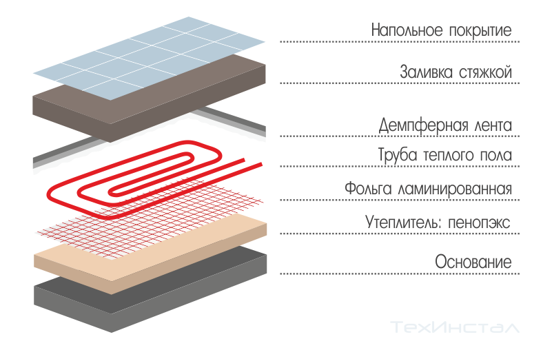 Схема бетонной стяжки для теплого пола