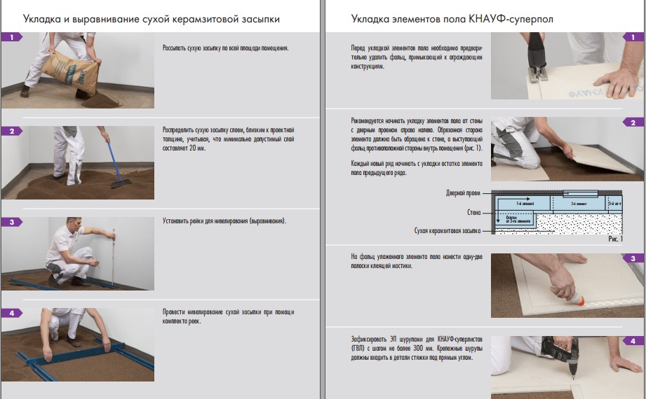 Монтаж сухой стяжки пола «Кнауф» (видео)