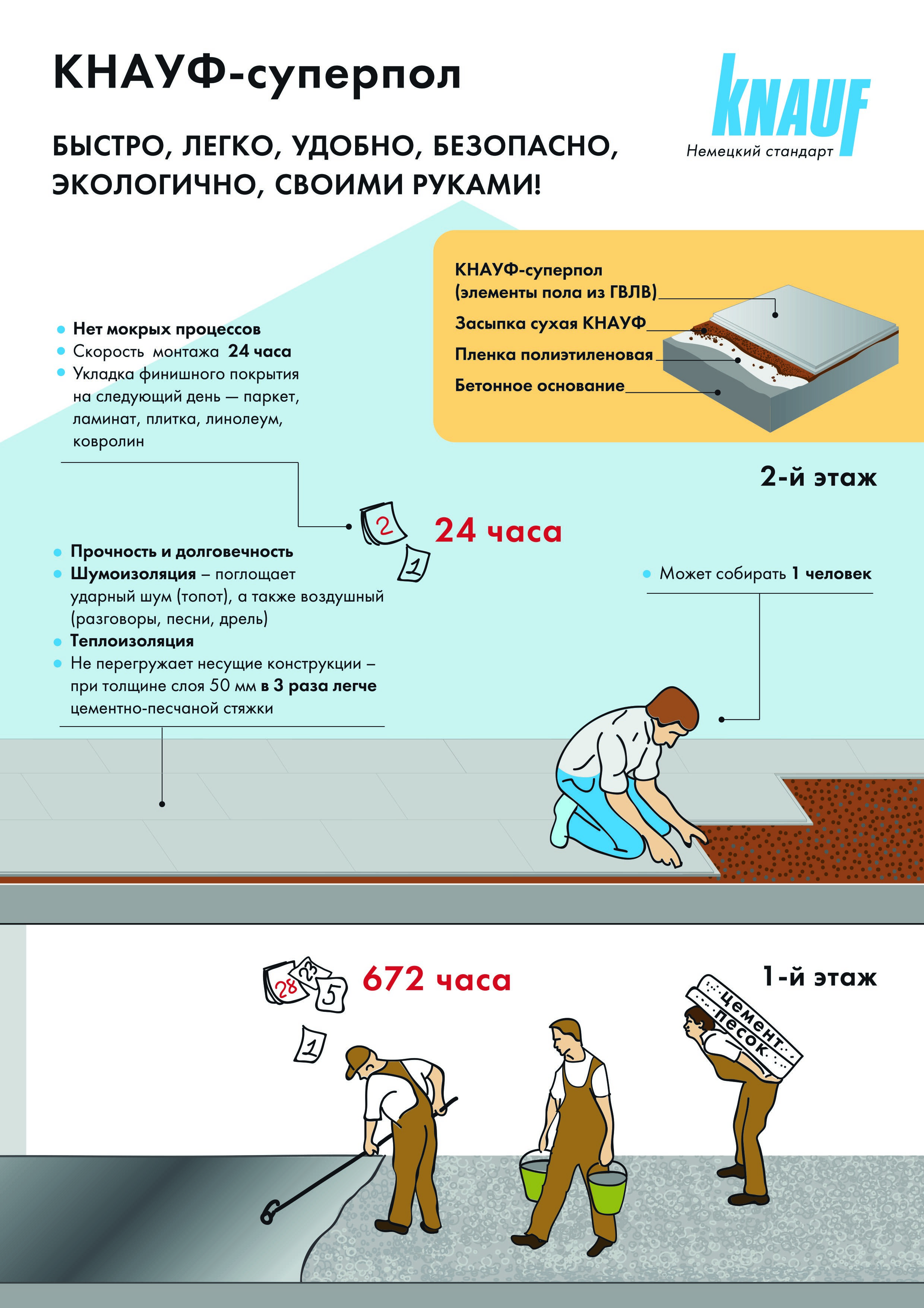 Можно сказать, что специалисты Кнауф создали практически идеальную альтернативу другим видам чернового пола