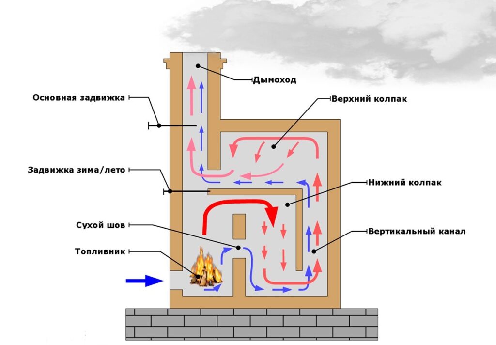 Колпак представляет собой отдельную камеру для задержки нагретого газа, что способствует экономии топлива и повышению КПД работы печи.