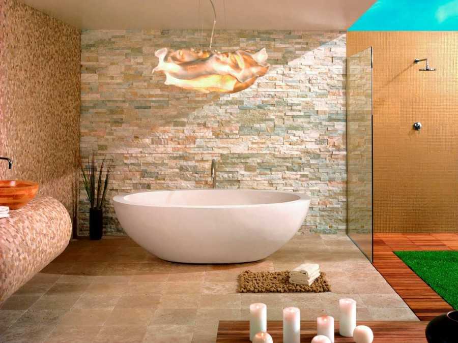 В обширных и объемных ваннах можно взять практически любой вид облицовочного материала и выбрать в качестве красочного оформления практически любой оттенок. При этом допускается использование керамики с глянцевой или матовой поверхностью с изображением или без, так же можно использоватькерамику различных размеров и габаритов.
