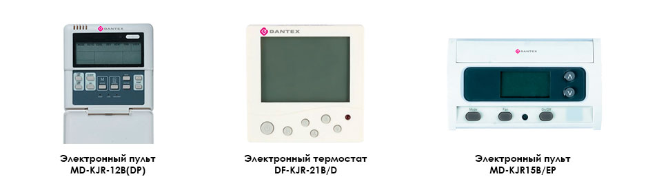 Другие электронные термостаты (DF-KJR-21B/D, MD-KJR15B/EP, сенсорный пульт MD‑KJR29B) кроме стандартного набора функций могут отличаться дополнительными функциями, корпусом. Также термостаты могут иметь подсветку дисплея, дистанционное управление, таймер, сигнализацию аварии (специальные коды), часы, установку разницы температур на входе/выходе чиллера и другие.