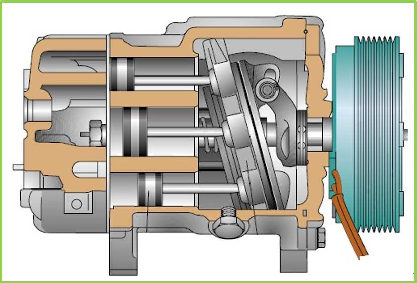 Поршневые компрессоры являются основным элементом в кондиционерах. Компрессор представляет собой вакуумную помпу, которая использует поршни для сжатия воздуха или газа в кондиционере.