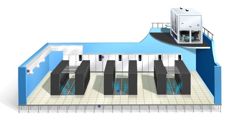 Особенно эффективно данная система кондиционирования масштабных серверных и дата-центров, когда коридоры для горячего и холодного воздуха изолированы. Для максимального эффекта можно оборудовать каждый ряд специальными установками, которые будут всасывать нагретый воздух, остужать его и выбрасывать в холодный коридор.