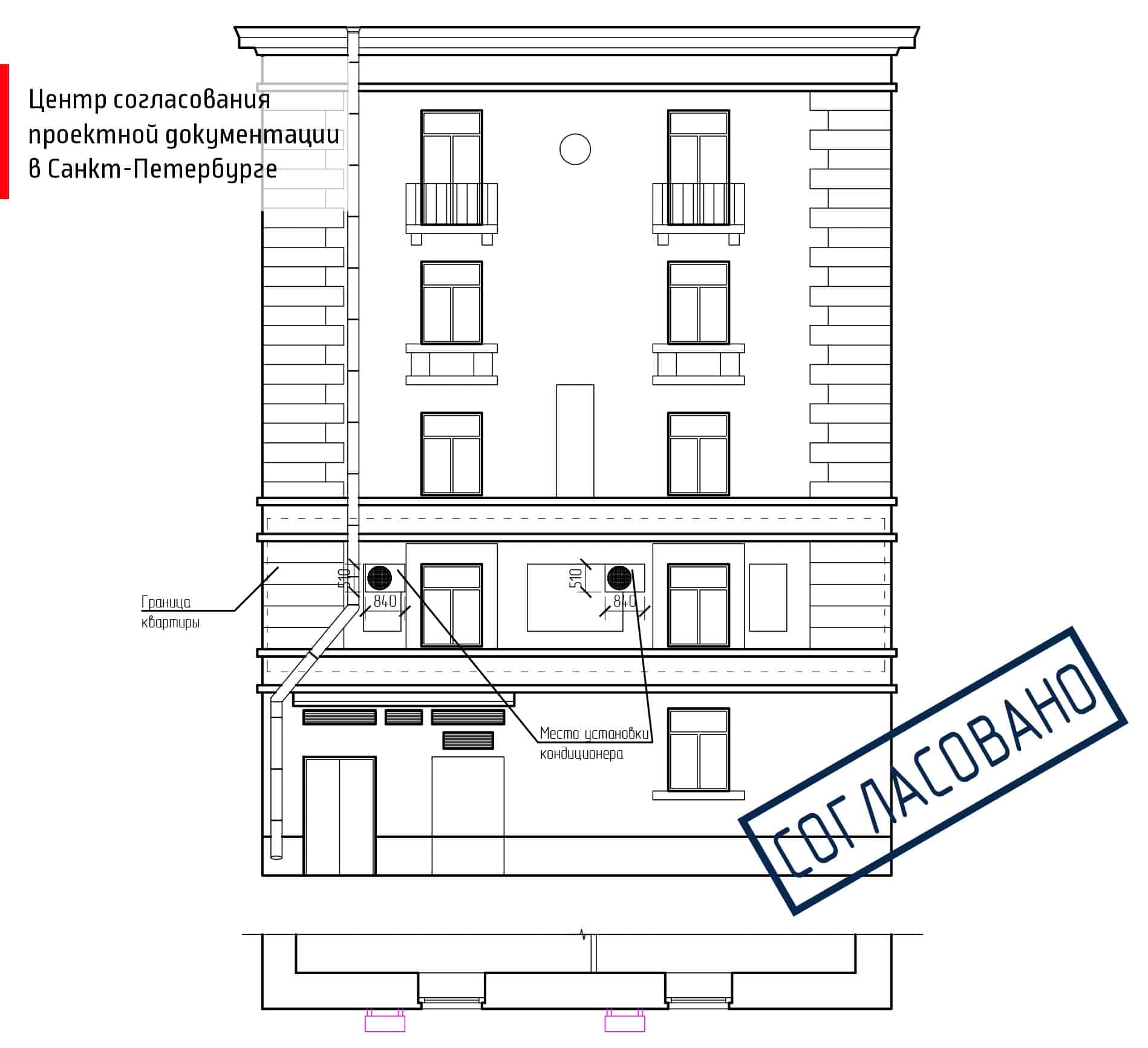 Например, в Санкт-Петербурге блоки систем кондиционирования считают элементами благоустройства. Требуется получить задание на разработку проекта благоустройства и согласовать такой проект в Комитете по градостроительству и архитектуре. Регулирует процедуру .