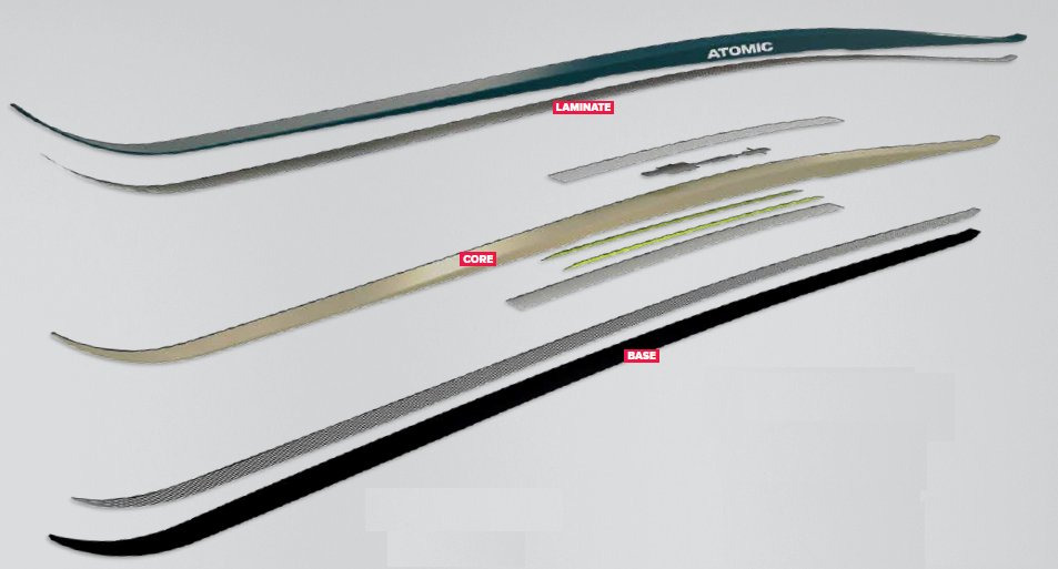 Nomex с SDS — самый легкий сердечник, ставится на топовые модели. На фото лыжи Atomic World Cup Classic с технологией SDS (слой между скользящим пластиком и сотовой структурой).