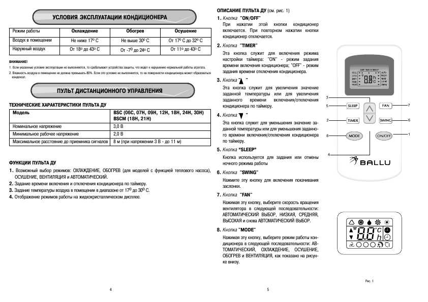 2. Прочтите инструкции к пульту управления и кондиционеру Ballu