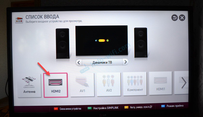 Чаще всего для доступа к меню выбора источника сигнала на пульте ДУ от телевизора есть отдельная кнопка. Обычно она подписана SOURCES или INPUT. Нажимаем на нее и выбираем HDMI-вход, в который мы подключили приставку (они под номерами).