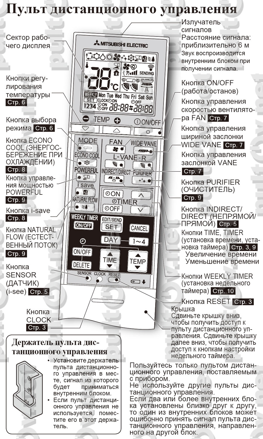 Инструкции к пульту управления и кондиционерам Mitsubishi Electric