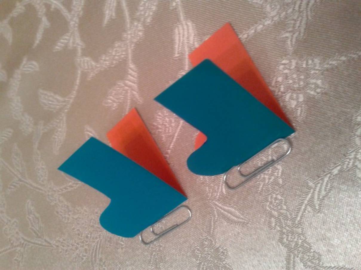 Сложите заготовку пополам. Скрепку открытой стороной прикрепите к нижней части конька