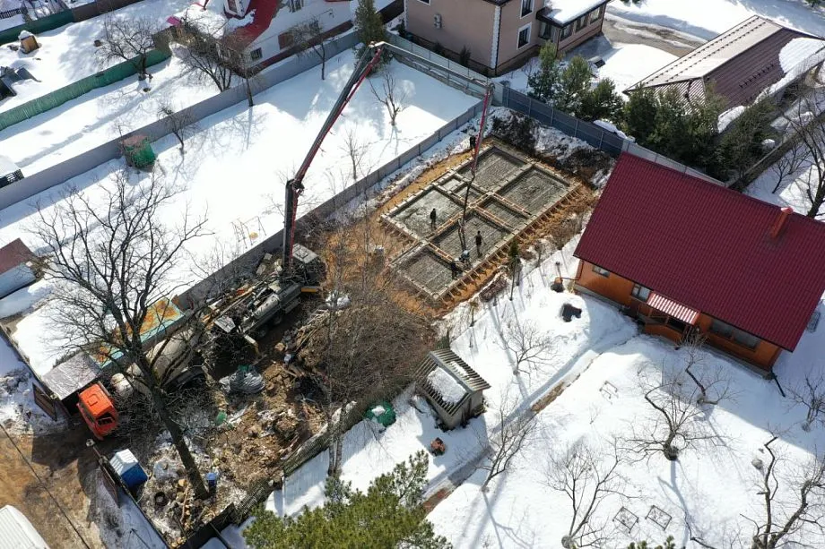 Зимой тоже можно возвести фундамент. Мы строим дома на плитном фундаменте — земляные работы и заливку проводим при температуре до -20 градусов. Используем морозостойкие присадки в бетон, греющий кабель, а для правильной сушки — купол из пленки и тепловые пушки. Возведению свайного фундамента мороз тоже не мешает.