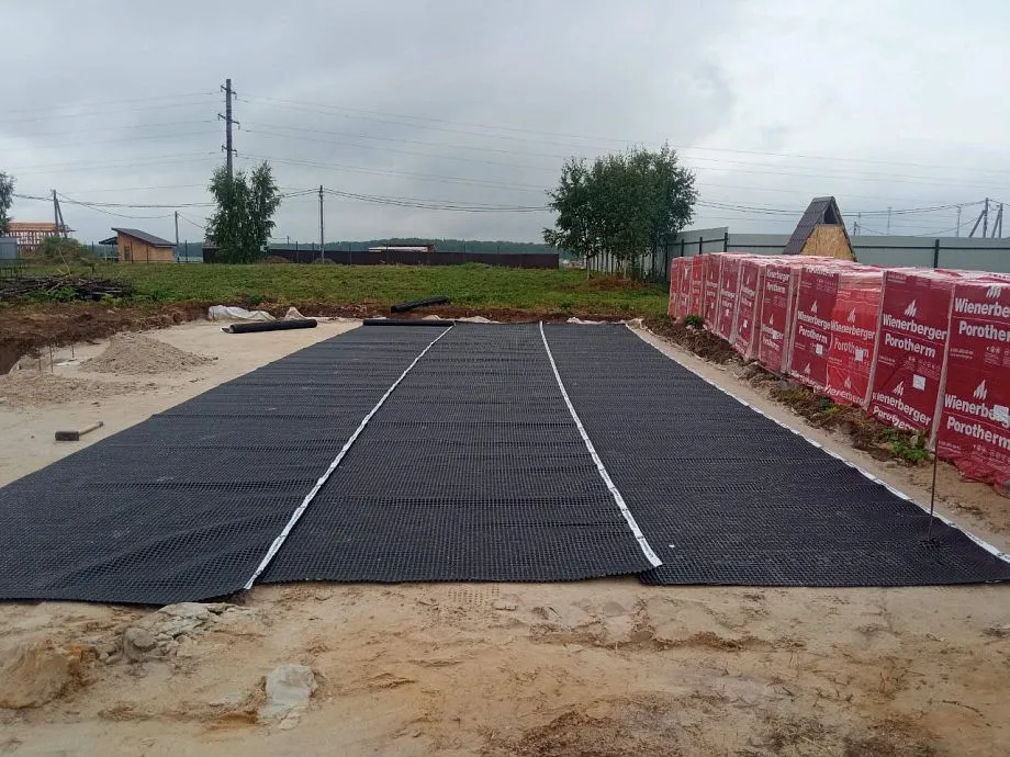 Ещё один приём, призванный защитить фундамент в холодный период, – отведение грунтовых вод. Чем суше грунты вокруг фундамента, тем ниже риск их вспучивания. Для стока воды прокапывают канавы по периметру пятна застройки и делают из них отвод воды в низину или дренажные сооружения