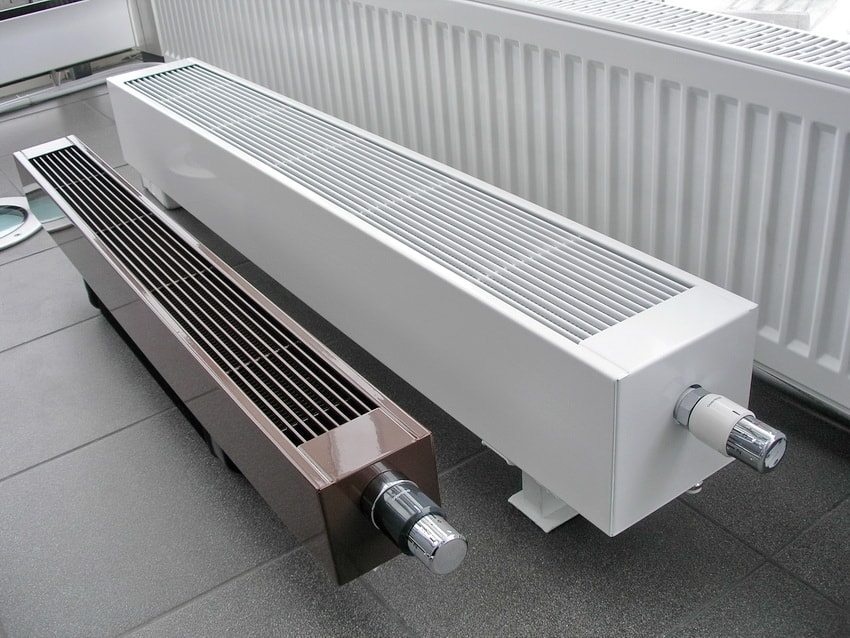 Любопытно, что хотя конвекторы и радиаторы отличаются друг от друга по конструкции, водяной конвектор очень похож на радиатор: оба могут подключаться к центральному отоплению. Разница лишь в том, что в первом случае распределение воздушных потоков осуществляется за счёт вертикальных пластин, укреплённых на трубах с теплоносителем. Во втором — используются секции, заполняемые водой.