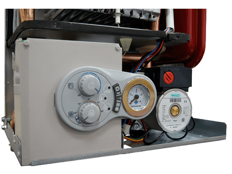 наличие двух теплообменников: медного и стального — позволяет добиться максимальной отдачи тепла из теплоносителя в систему;