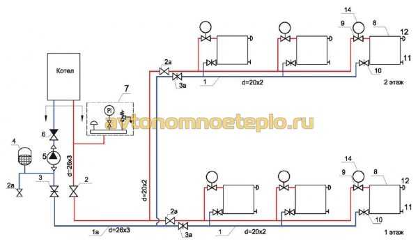 циркуляционный насос немецкого производства рассчитан на работу в трёх скоростях, что позволяет регулировать давление в системе и обеспечивать скорость прогрева дома;