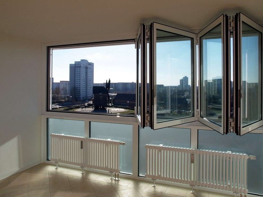 - Панорамные окна. В стекло же вы кронштейны не вмонтируете, исходя из этого остаётся лишь осуществить фиксацию батареи к полу.