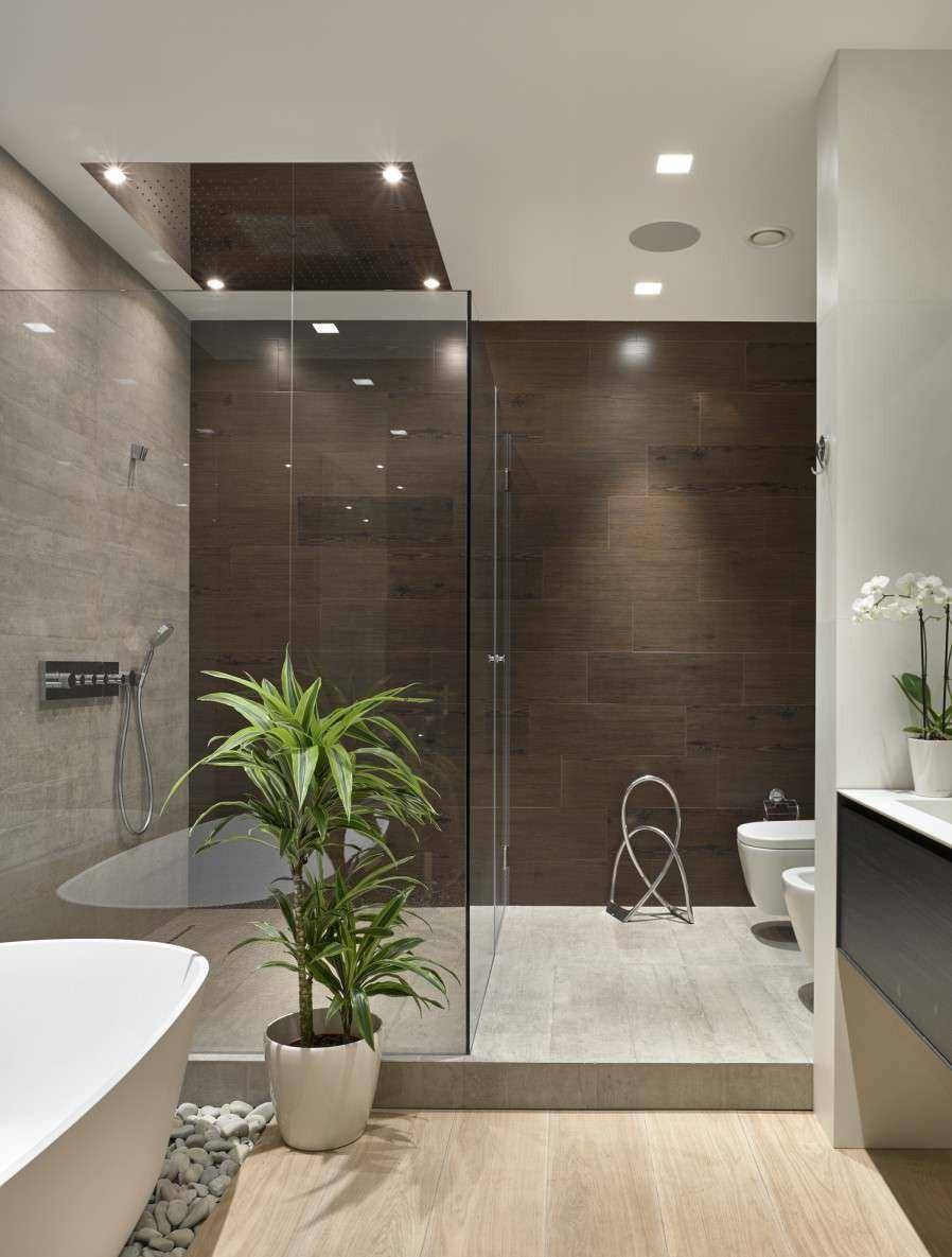 Он помогает сэкономить пространство, обеспечивает экономный расход воды, упрощает соблюдение чистоты, ускоряет процедуру мойки. Современные конструкции имеют дополнительные функции, повышающие комфорт, а внешний вид создает привлекательный современный дизайн. На фото показана современная ванная комната с душевой кабиной.