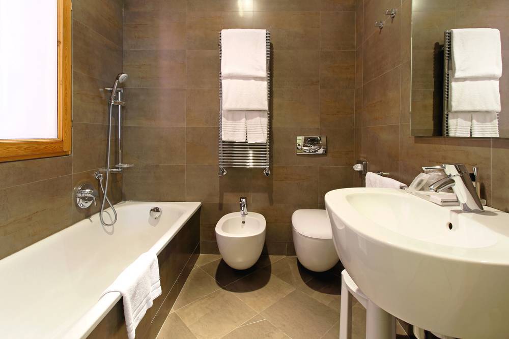 - Вешалки для полотенец и купальных халатов стоит крепить в местах досягаемых, но все же достаточно защищенных от попадания влаги — иначе за время принятия душа или ванны ткань промокнет. Чаще всего вешалки под одежду и полотенца укрепляют на входных дверях.