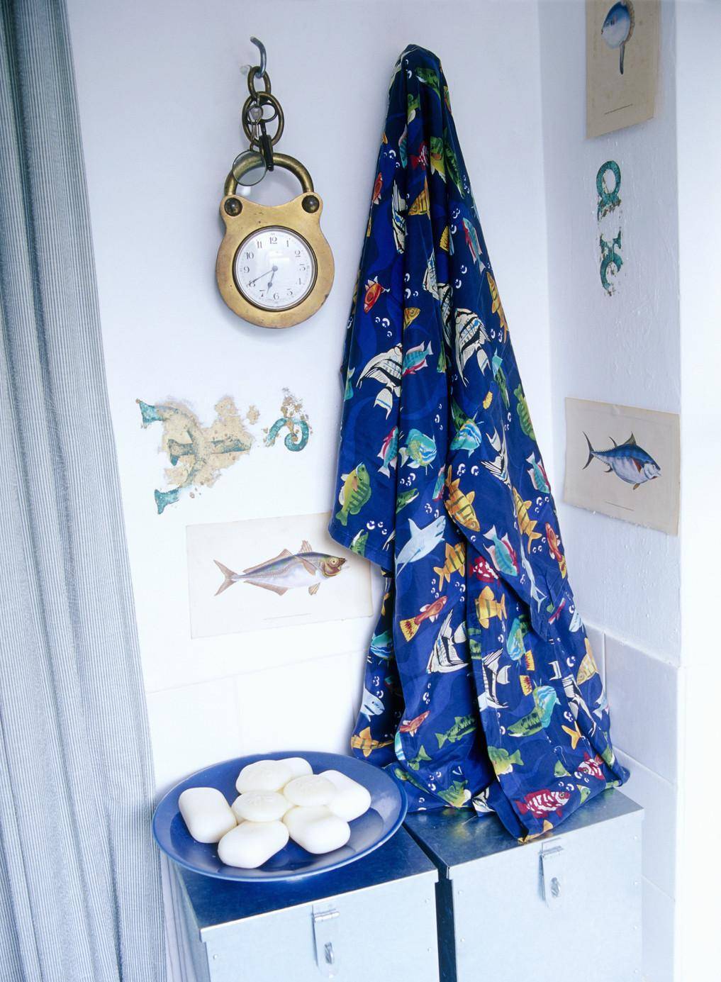 - Полотна должны сочетаться с общим стилем. Неплохой примерный вариант – комбинация голубых и зеленых оттенков, которые в ванной комнате способны создать эффект чистоты и гармоничности.