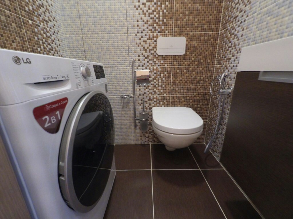 Совмещение ванной и туалета стало модным и удобным направлением обустройства жилых помещений. Естественно, возникает вопрос, как гармонично вписать унитаз, особенно при небольших габаритах комнаты. Оптимальный вариант — подвесной унитаз с инсталляцией. Пример его реализации показан на фото.
