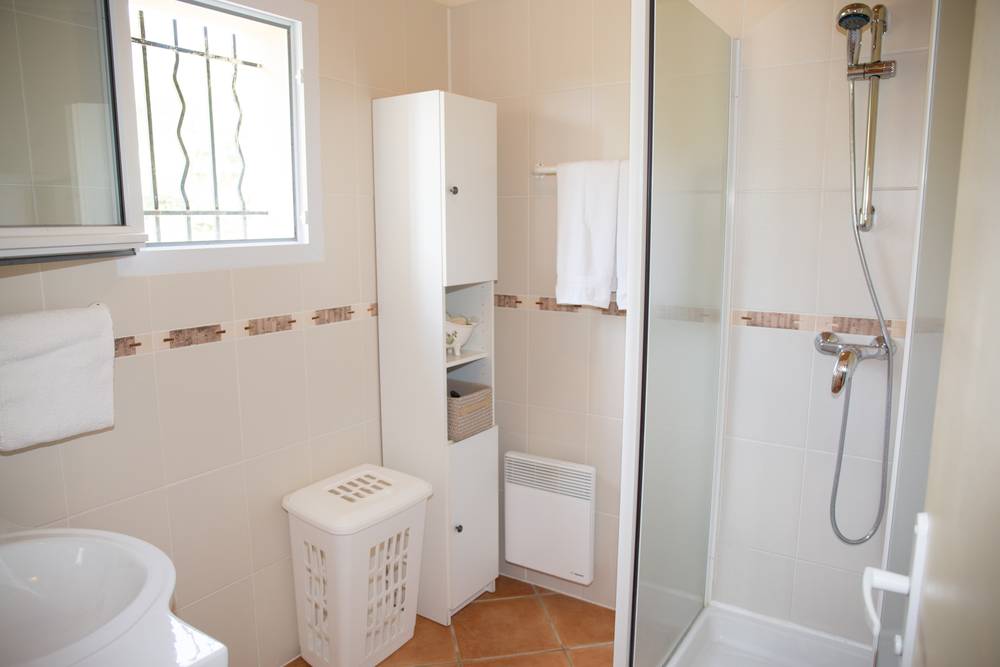 на открытых полках можно удобно расположить прозрачные емкости с солью для ванн разных цветов, которые будут еще и элементами декора;