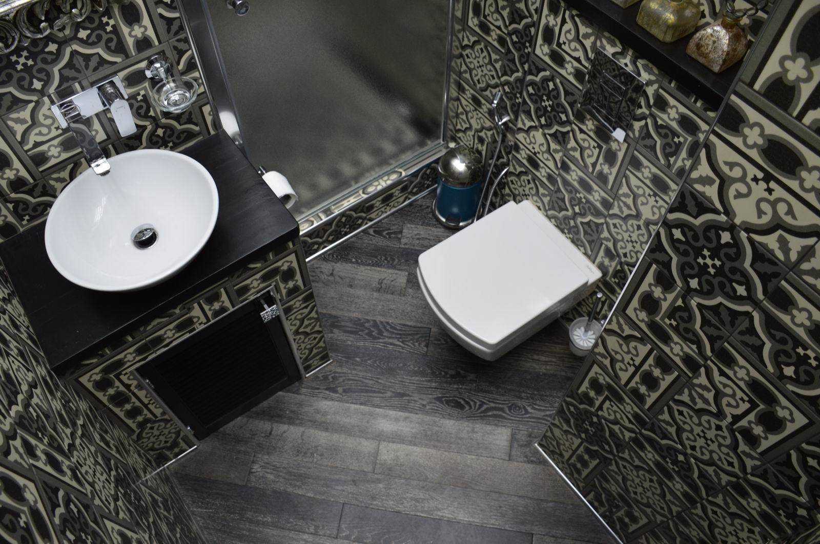 Небольшую ванную лучше оформить в стиле хай-тек, минимализм или лофт. Деревенский стиль потребует подходящих аксессуаров: тумбочек с декупажем и предметов декора, стилизованных под старину. Кантри и лофт разнообразят деревянной, кирпичной отделкой, а также фурнитурой черного цвета.