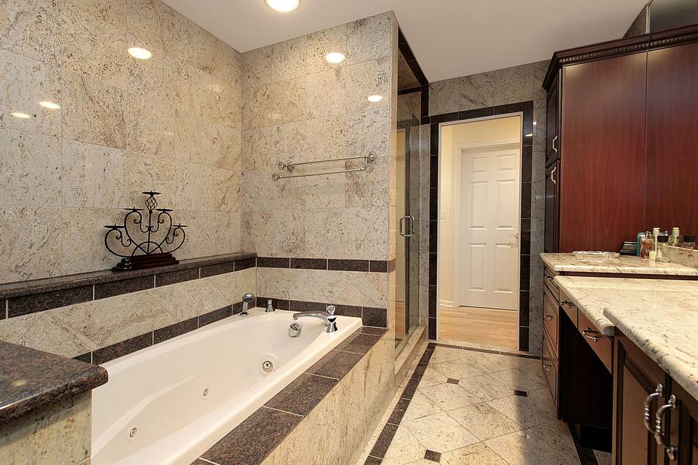 Особо эффектно большая плитка смотрится в просторной ванной. Здесь создается возможность создать роскошный интерьер. В небольших помещениях такая плитка красиво смотрится при правильной затирке, когда обеспечивается единство поверхности. Эта облицовка подходит, как для пола, так и стен.
