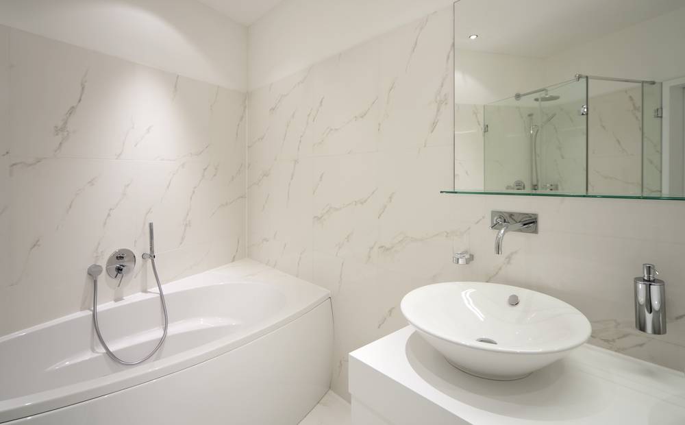 кафель – в маленькую белую ванную комнату можно использовать мелкую плитку, так и широкоформатную. Кафель считается самым лучшим материалом для отделки стен;