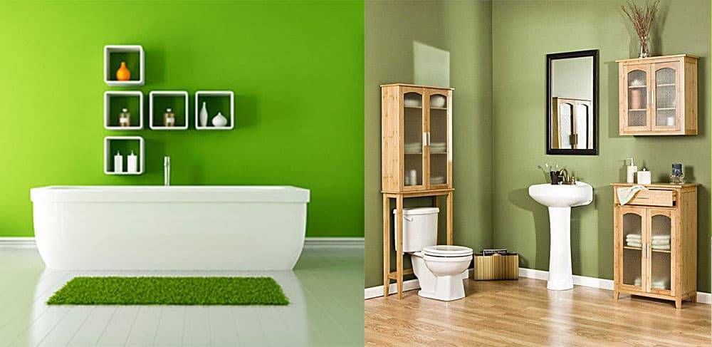 Зеленый вездесущ, однако при этом он не может быть единственным цветом, используемым в ванной 2018 года. Поскольку он вмещает и холодный, и теплый тон, создание множества нетривиальных комбинаций не составит труда. Найти цветового компаньона темно-зеленым оттенкам сложнее, однако они невероятно актуальны в этом сезоне! Большие ванные комнаты в изумрудном цвете будут выглядеть превосходно.