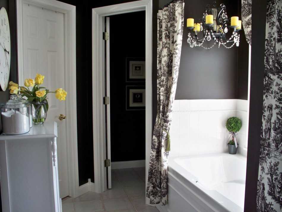 Красивые ванные комнаты получаются при использовании такого сочетания в стиле хай-тек. Чёрный при этом используют в виде плитки для пола, в оформлении дверей, полок, тумбы под раковину.