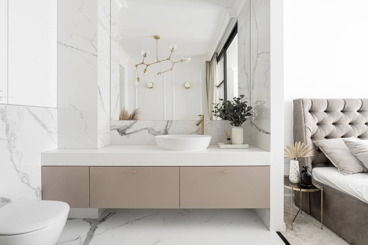 Справились ли дизайнеры с этой задачей? На наш взгляд, эффект потрясающий, и этот дизайн ванной комнаты — один из самых красивых, которые мы видели за последнее время. Он не только прекрасно иллюстрирует современные тенденции, но и излучает ауру роскоши и уюта одновременно, чего нелегко достичь.
