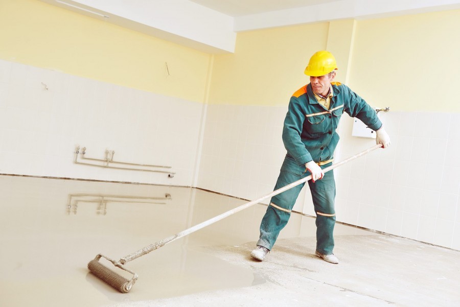 Работу удобнее всего начинать от стены, противоположной к выходу из помещения – так не придется ходить по нанесенному составу.
