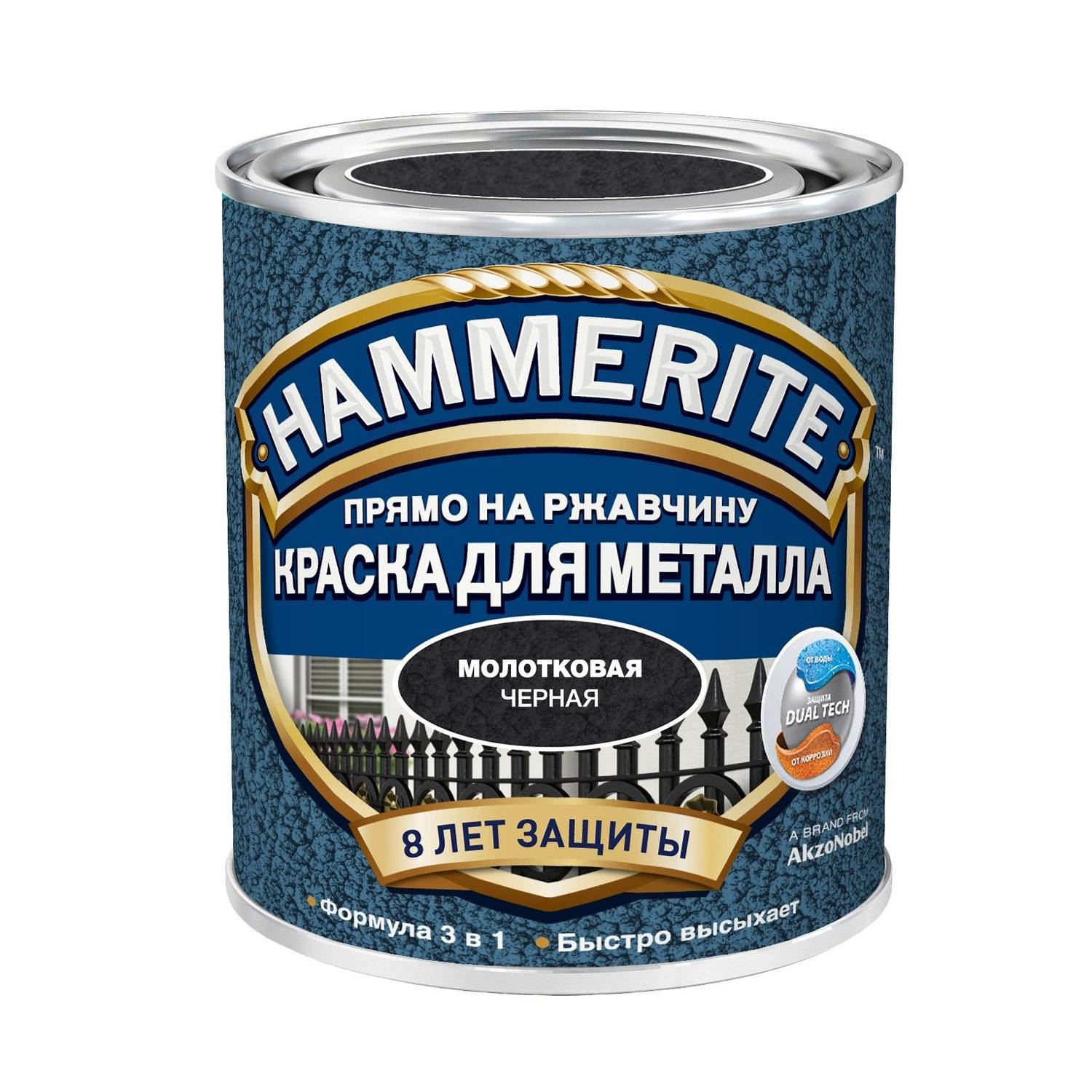 - Hammerite 3 в 1. Она выполняет несколько функций: грунтует поверхность, преобразует ржавчину, обеспечивает качественное финишное покрытие. Она устойчива к высокой температуре, механическим повреждениям, быстро высыхает.