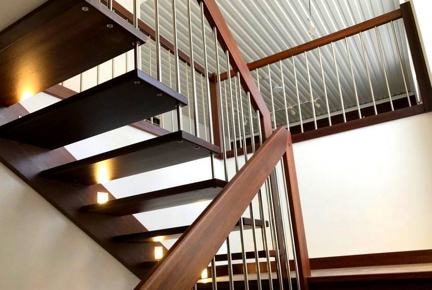 Перила можно вмонтировать в стену или прикрепить к ступенькам