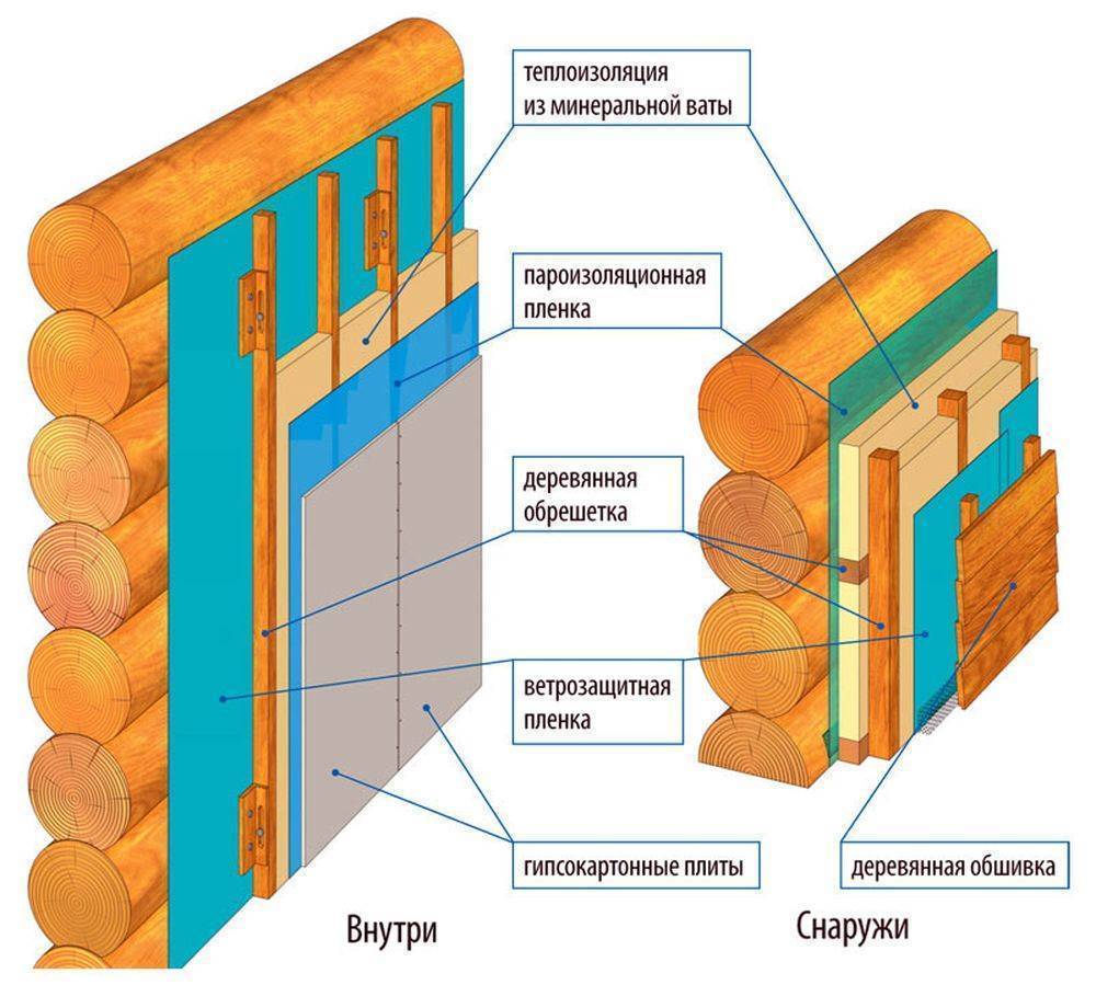 Как и чем крепить утеплитель к стене из бруса, рубленого бревна