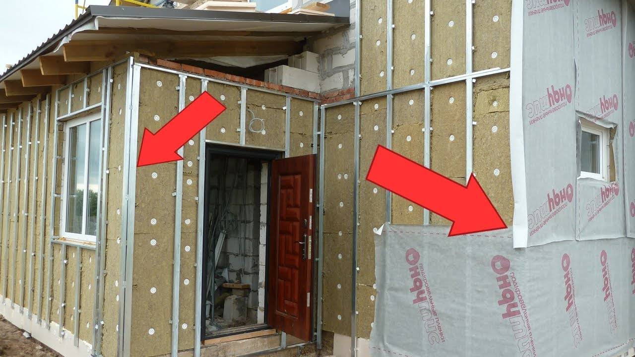 Минвату обязательно закрывают ветрозащитным или гидроматериалом. Полотна нужно закреплять, как раньше: внахлёст. Пустоты у оконных и дверных проёмов заполняют монтажной пеной.