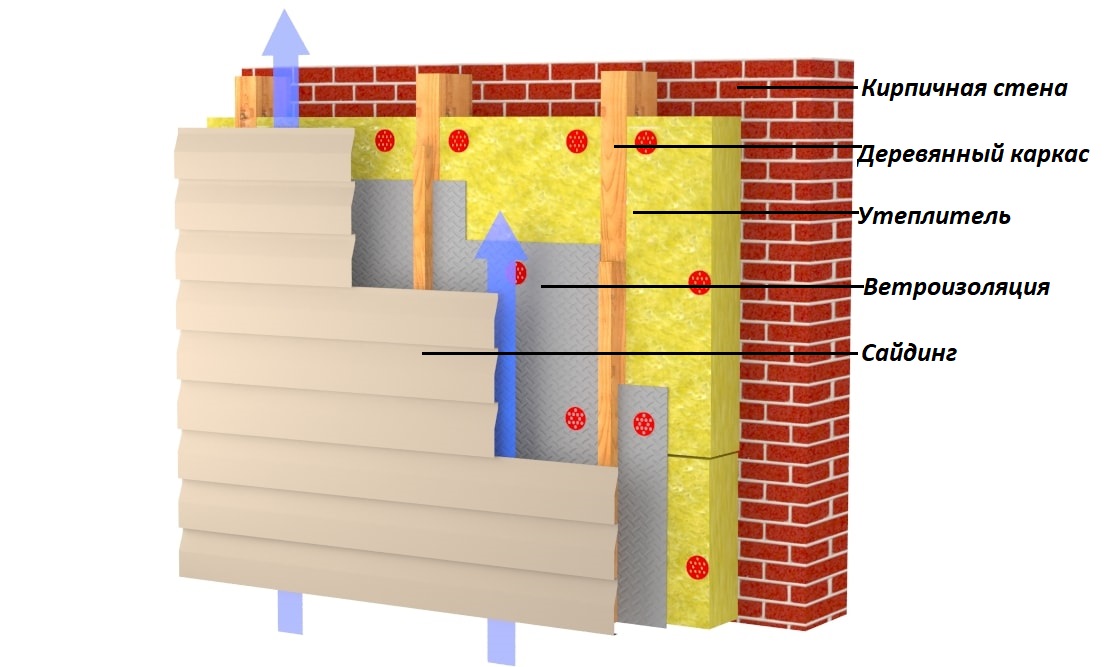 Технология утепления сайдингом наряду с использованием мокрого метода, также не относится к самостоятельному утеплению. Виниловый сайдинг, а тем более металлический сайдинг, не могу быть отнесены к теплоизоляционным материалам. Их также используют только в качестве облицовочного (отделочного) материала для финишной отделки. Утепление стен снаружи под сайдинг можно выполнить с использованием пенопласта или минеральной ваты. Материалы укладываются в каркас, монтаж которого является обязательным этапом при навешивании сайдинга.