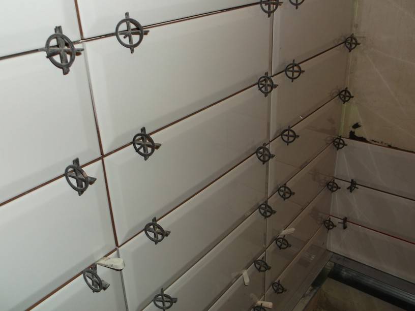 В результате такой работы швы получаются ассиметричными или вовсе расходятся. Поэтому устанавливаем крестики строго вертикально. Демонтаж крестиков производим на следующий день после укладки плитки