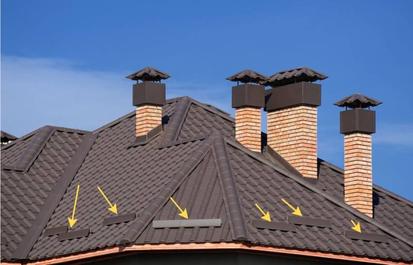 Многие при монтаже металлочерепицы задаются вопросом о том, следует ли обустраивать под нею контрбрус. Так вот, создание минимального вентиляционного отверстия под металлочерепицей, в пределах 4-5 см, необходимо для того, чтобы исключить образование конденсата под кровлей, увеличив тем самым срок её непрерывного использования.