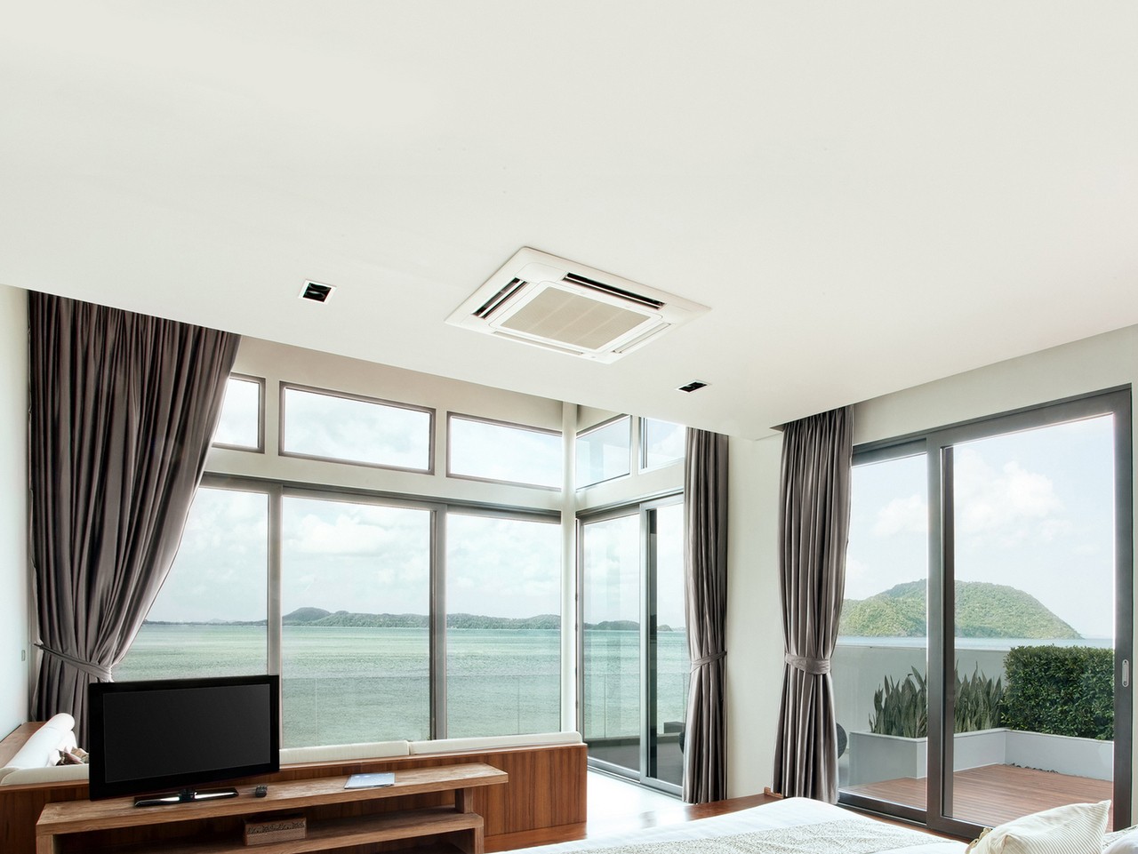 Потолочные кондиционеры эстетичны, компактны, работают очень тихо и позволяют навсегда избавиться от сквозняков.